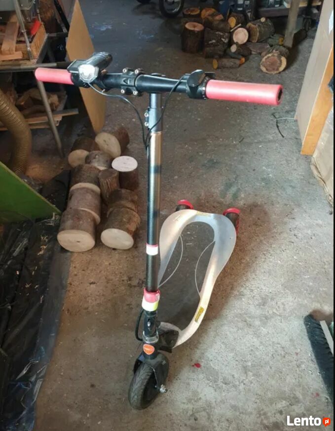 Sprzedam hulajnogę 3 kołową. Elastyczne tylne zawieszenie. Skręcanie jest przez kierownicę ale i pochylaniem się podczas jazdy.Hamulec i gaz to łopatki w kierownicy